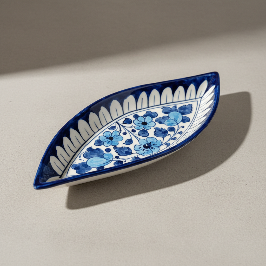 Handmade Indigo Bloom Skiff Tray