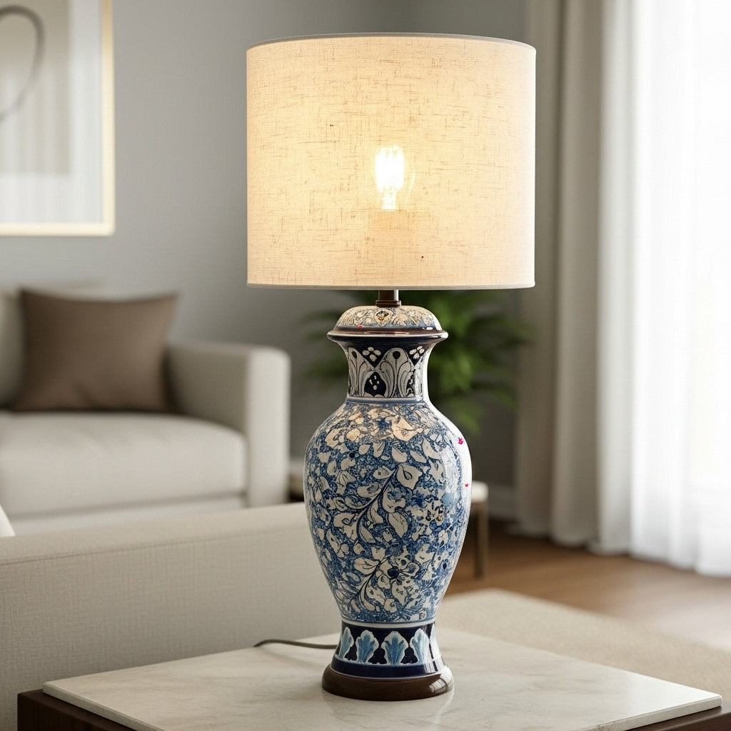 Bring a touch of timeless elegance to your home with our signature Royal Bloom Luminary. Handcrafted by master artisans using centuries-old Blue Pottery techniques, this lamp is not just a lighting fixture—it is a piece of living history.