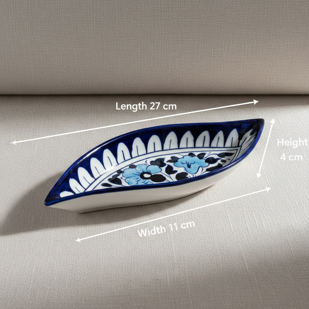 This Sapphire Skiff Appetizer Tray is an elegant reimagining of the traditional boat dish, blending a sleek, nautical silhouette with the timeless soul of Blue Pottery. Its unique curved form is designed to cradle your culinary creations, making it a sophisticated "vessel" for modern entertaining.