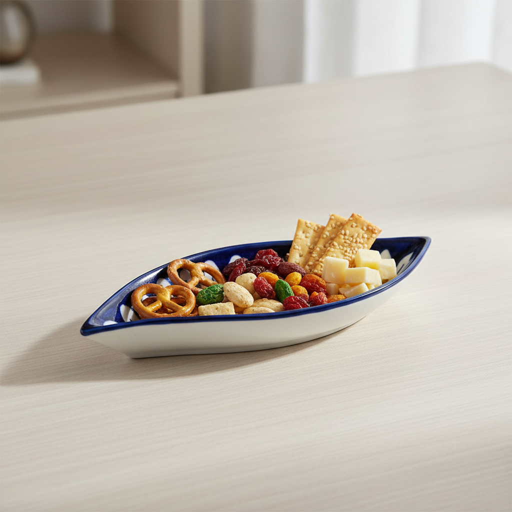 High-Gloss Protective Shield: Finished with a premium, food-safe glaze and fired at extreme temperatures, this tray is as durable as it is beautiful. The glass-like finish ensures the deep blues and crisp whites remain vibrant, resisting stains from oils, dips, or sauces.
